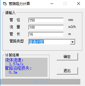 下圖為100口徑50m3/h管道16米的損耗計算結(jié)果